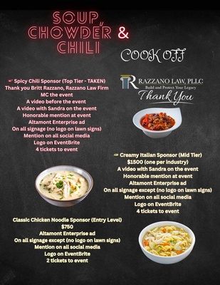 Get ready to stir up some fun at the ultimate winter warm-up! Join us for the Soup, Chowder & Chili Cook-Off — a flavorful showdown featuring non-profits, spicy samples, creamy classics, and a lineup of fun local vendors to shop while you sip and savor! 🌶️🛍️🥣This event also features local distilleries and wineries.